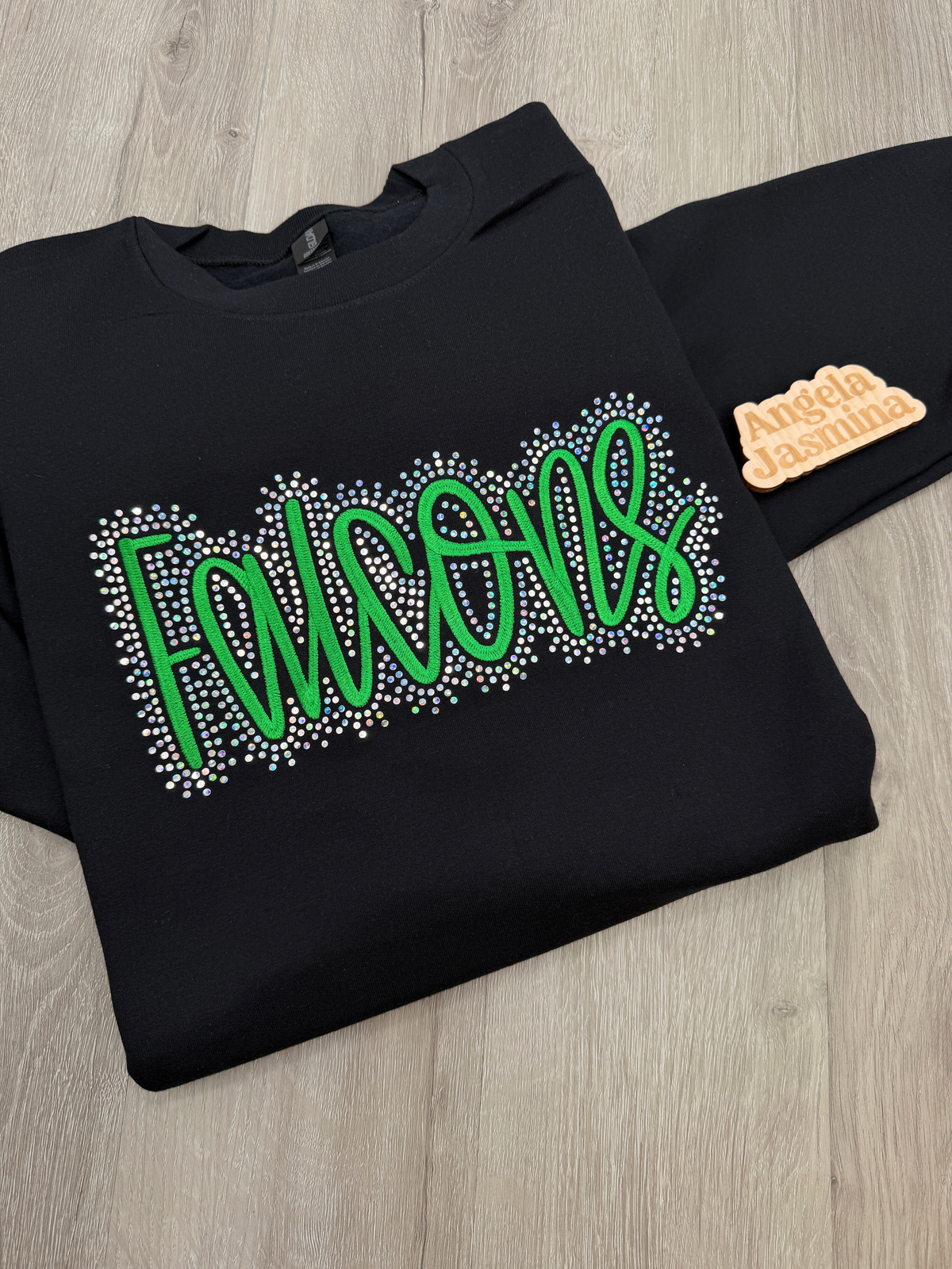 Show off your school pride in sparkling style with this customizable embroidered and spangle bling sweatshirt!