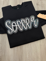 Perfect for students, teachers, moms, and fans — this cozy crewneck lets you represent your mascot with a bold embroidered “custom team name” design surrounded by shimmering spangles that catch the light beautifully.