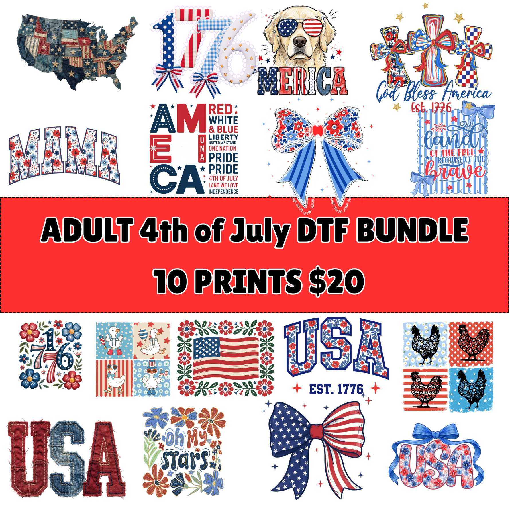 ADULT 4th of July Patriotic DTF bundle