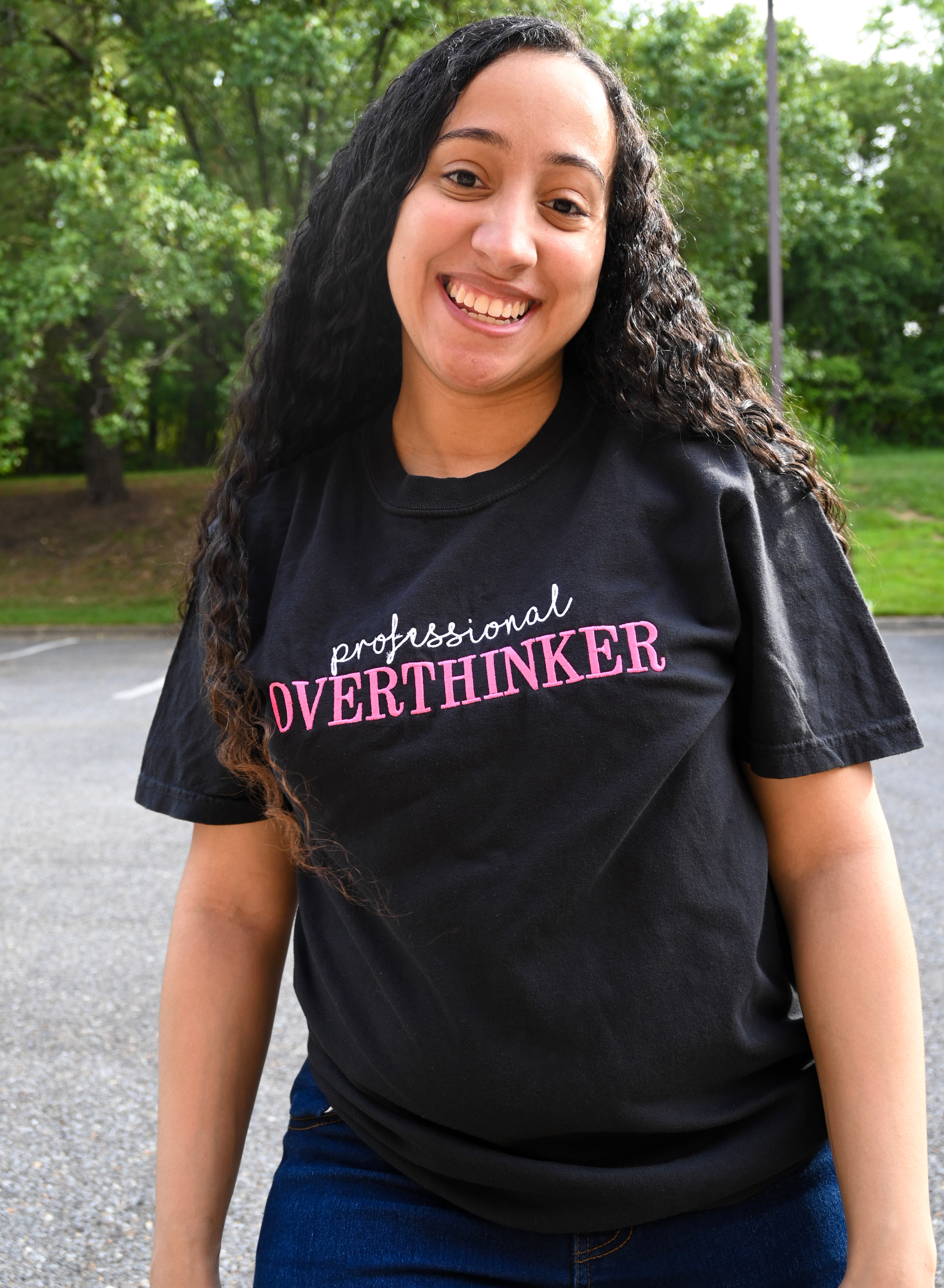 Design: Thoughtful "Brain Never Stops" embroidery in calming pastel rainbow colors