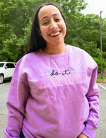 Embroidered " do it ANYWAY" crewneck sweatshirt.