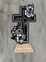 Black Faith Floral Cross Sequins & Chenille Patch