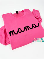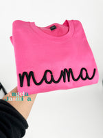Wrap yourself in comfort and style with our embroidered sweatshirt featuring the endearing title 'Mama' in luxurious black puff embroidery! Crafted with care and attention to detail, this sweatshirt exudes both warmth and sophistication. The raised puff embroidery adds a touch of texture and dimension to the classic script, making it a standout piece in any wardrobe. Available in a range of sweatshirt colors, you can choose the perfect hue to complement your personal style. Made from soft and cozy fabric, our sweatshirt is ideal for lounging at home or stepping out in casual chic. Treat yourself or surprise a special mama in your life with this thoughtful and stylish gift. Embrace the joy of motherhood with flair and confidence in our embroidered 'Mama' sweatshirt