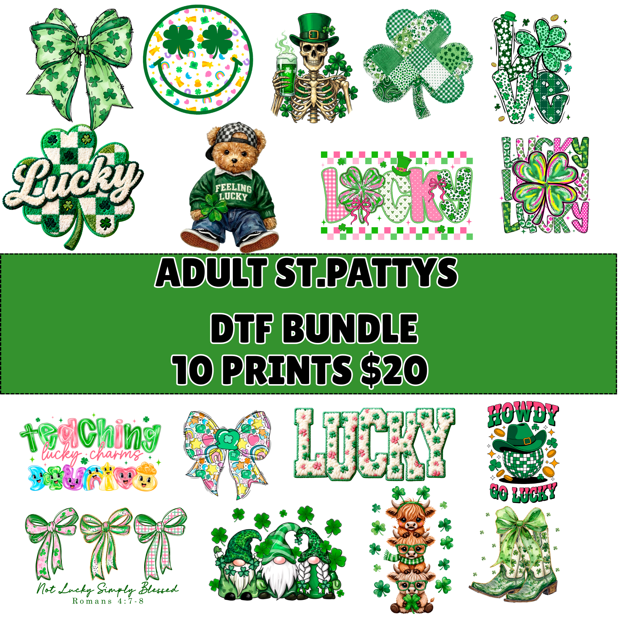 You will get 10 St. Patrick's themed adult size DTF transfers