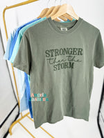 Wrap yourself in resilience with our Comfort Colors shirt, adorned with the empowering phrase 'Stronger Than the Storm.' Crafted for comfort and durability, this shirt not only offers a cozy fit but also serves as a reminder of your inner strength and resilience. Let its soft fabric and inspiring message carry you through any challenge with unwavering determination