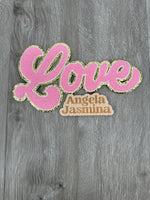 Pink Gold Love Script Chenille Patch