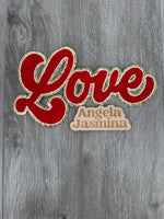 Red Gold Love Script Chenille Patch