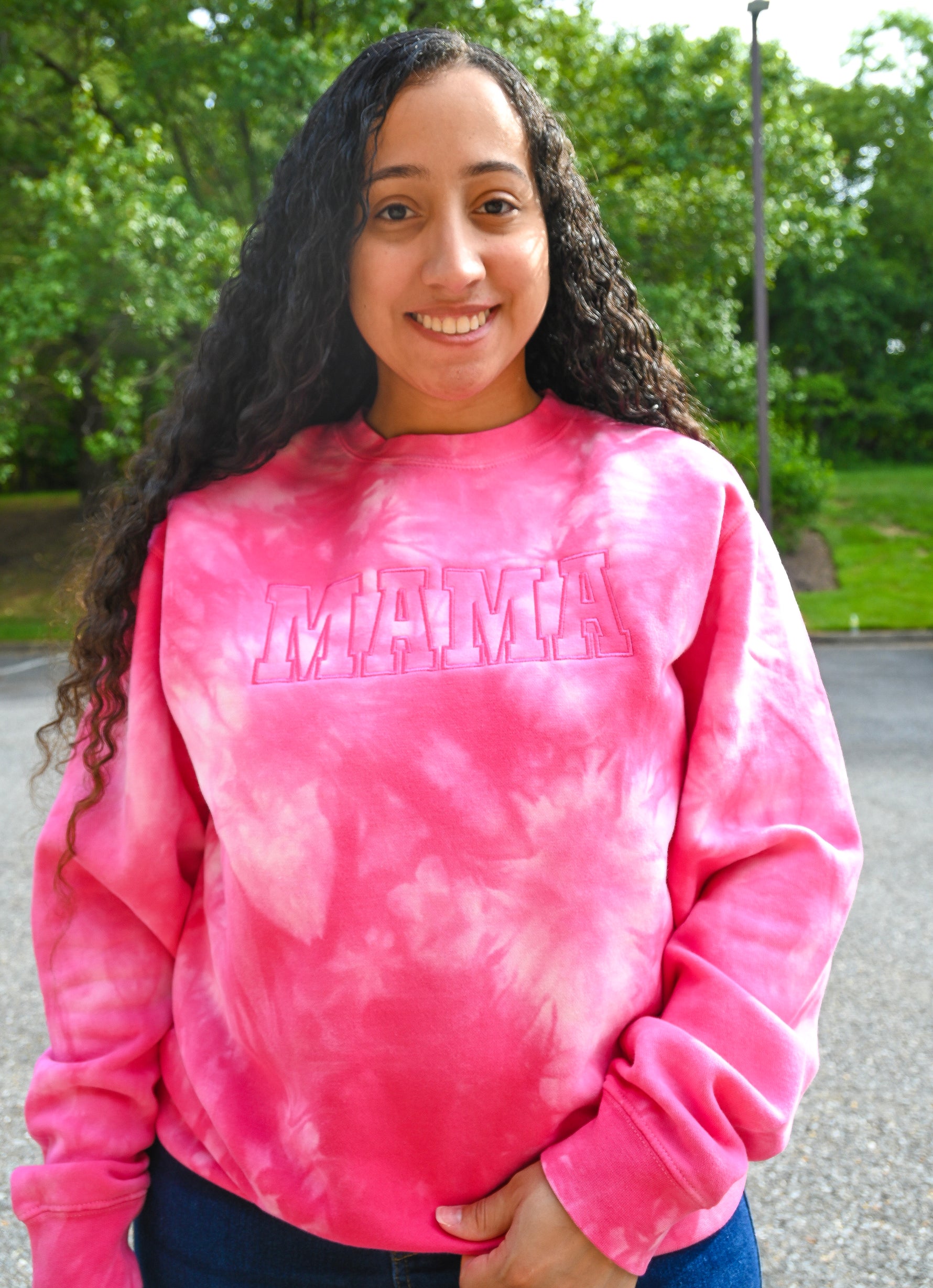 Embroidered MAMA tie-dye crewneck sweatshirt.