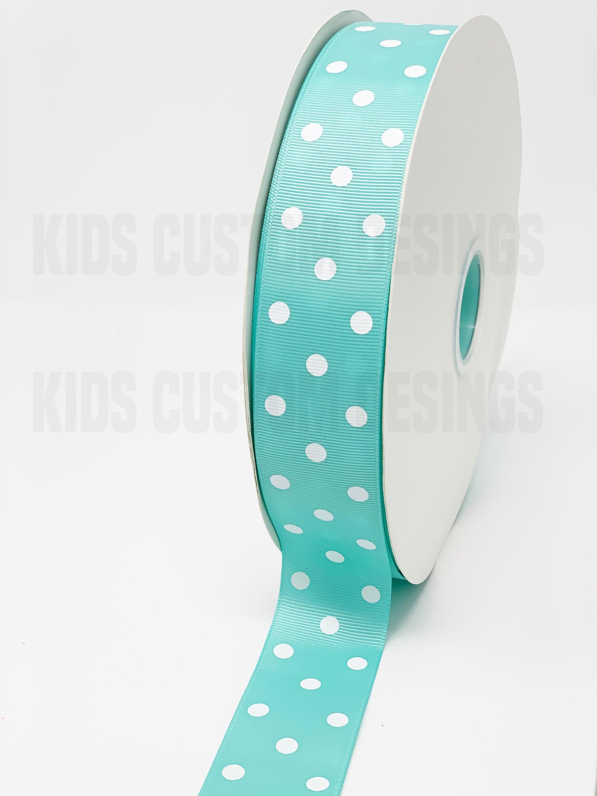 AQUA WITH WHITE POLKA DOT 1.5INCH 100 YD GROSGRAIN RIBBON