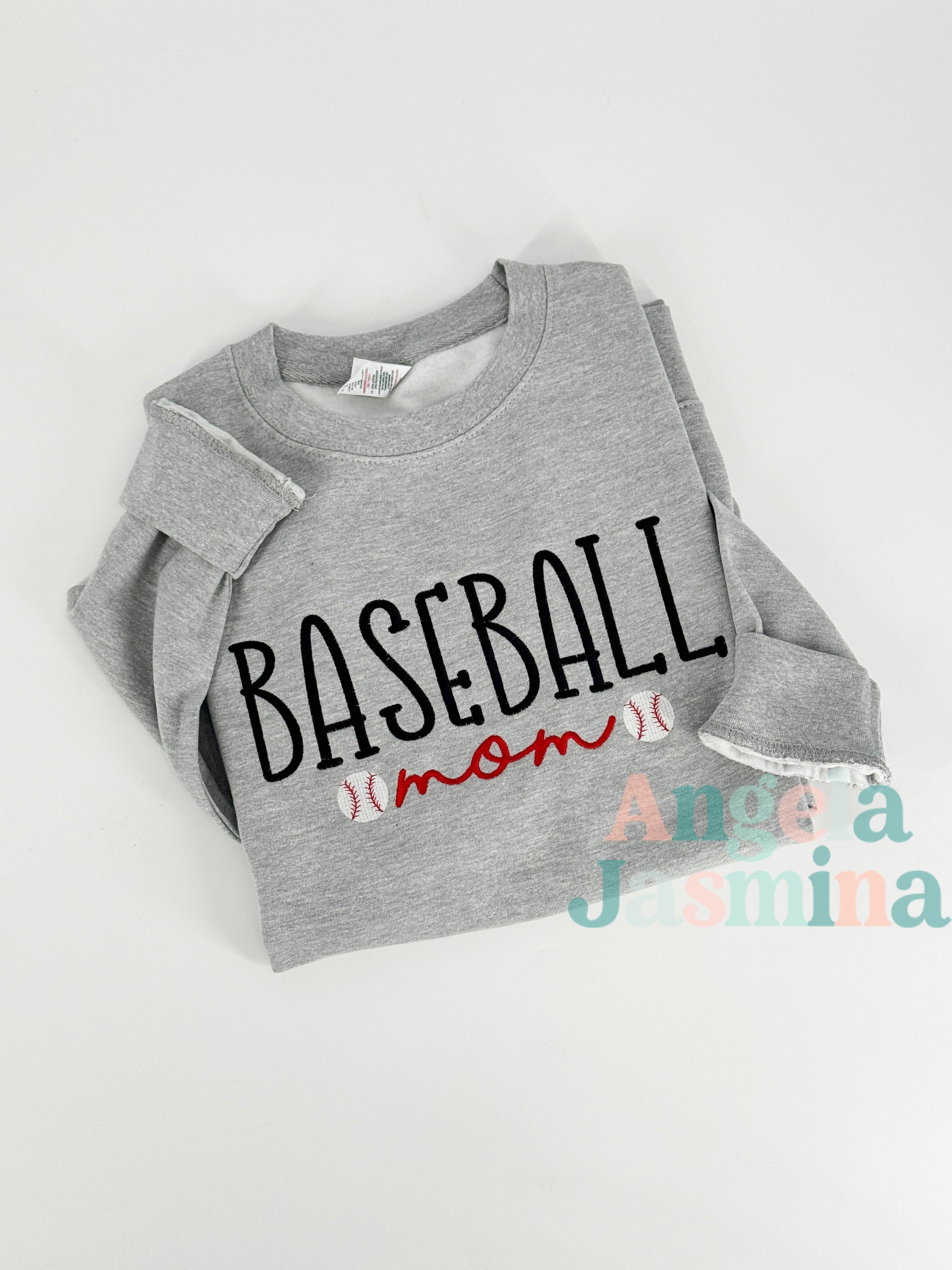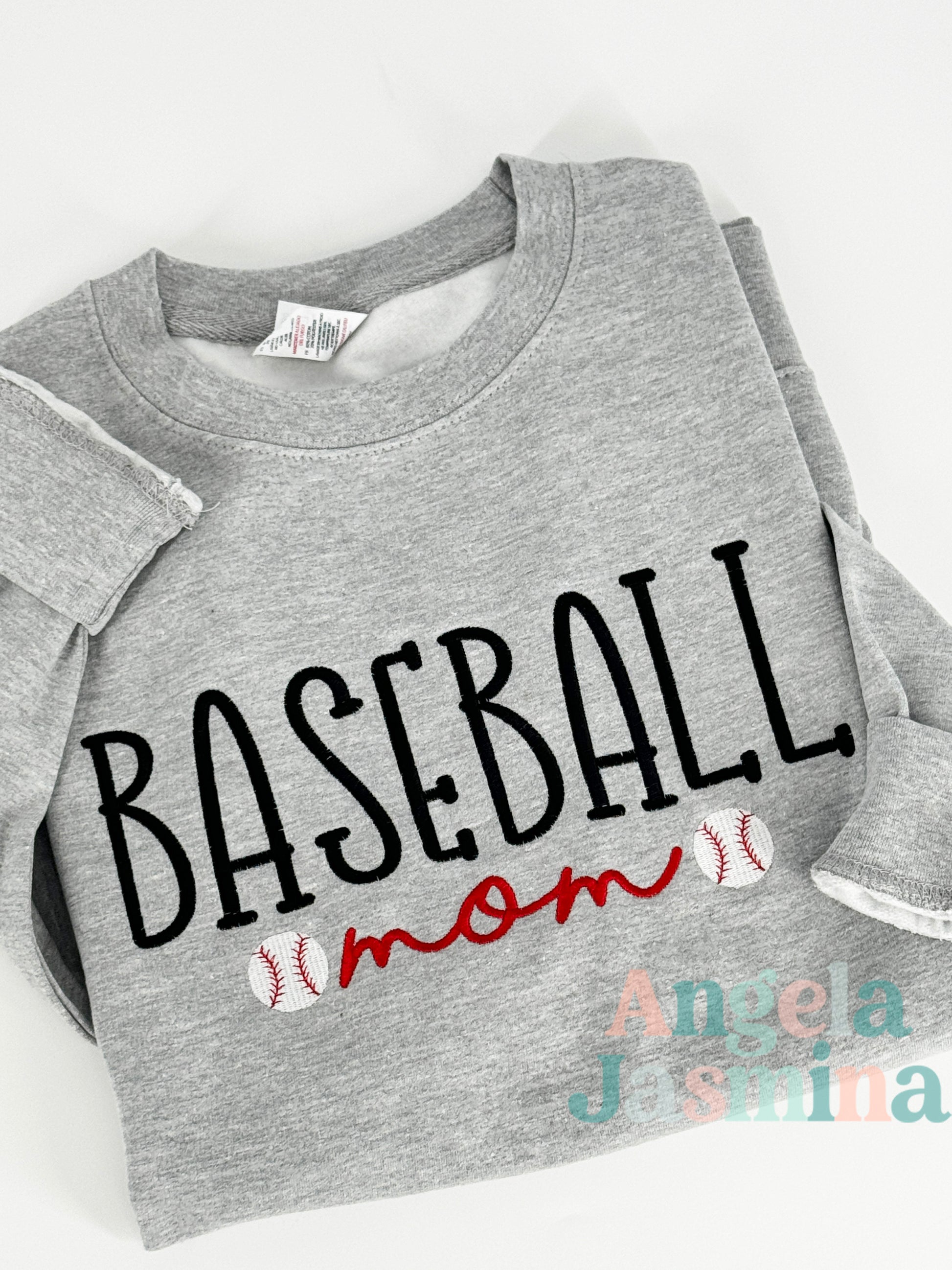 Elevate your game day look with our embroidered 'Baseball Mom' sweatshirt! Show your unwavering support for your favorite player with this cozy and stylish addition to your wardrobe. Crafted with meticulous attention to detail, each letter is expertly embroidered to ensure durability and longevity. Made from premium quality materials, this sweatshirt offers both comfort and style, making it perfect for cheering on your athlete from the stands or while running errands around town. Whether you're a seasoned baseball mom or new to the game, this sweatshirt is sure to become a favorite go-to piece in your closet. Get yours today and rock your proud mom status in style!
