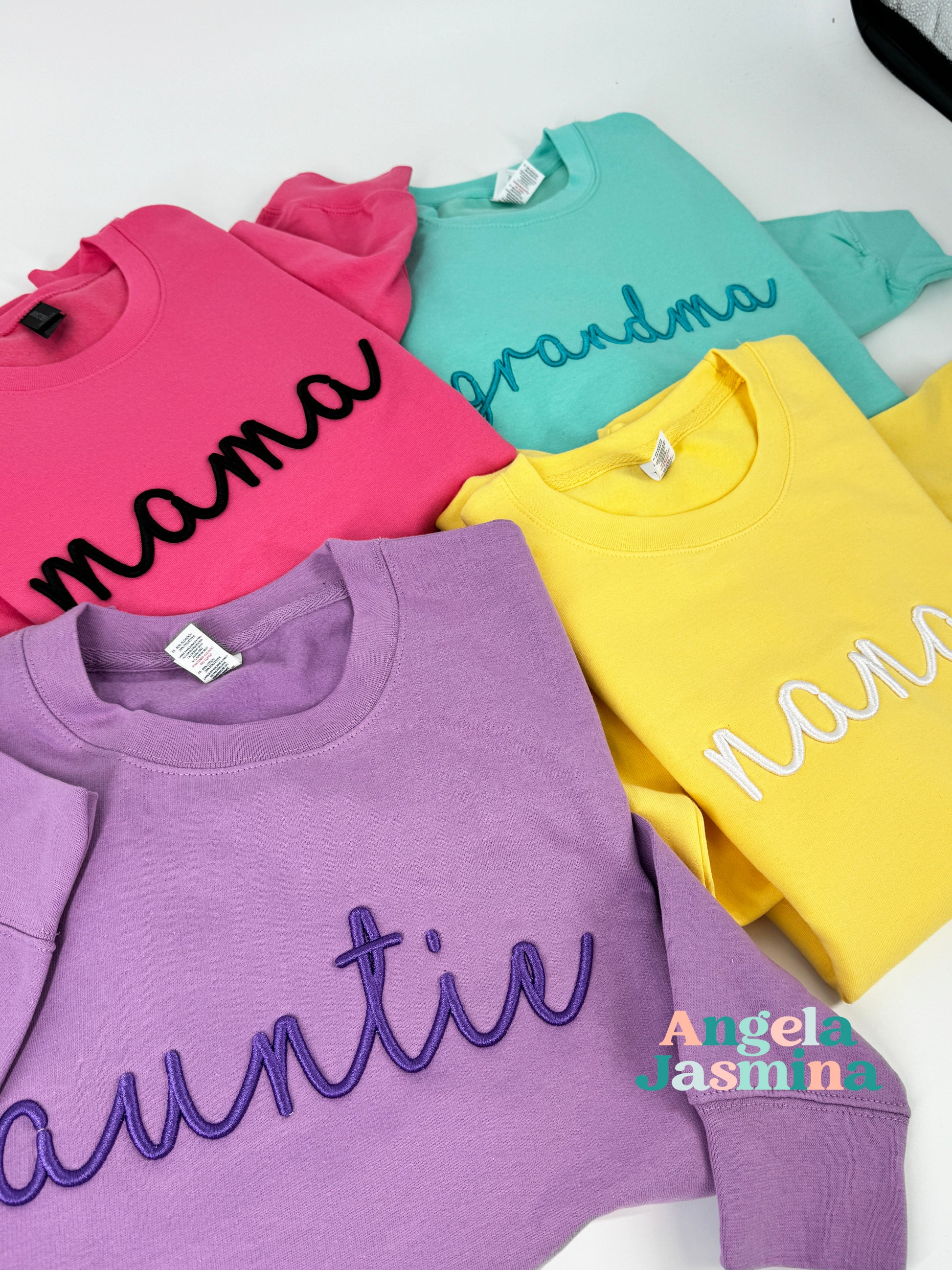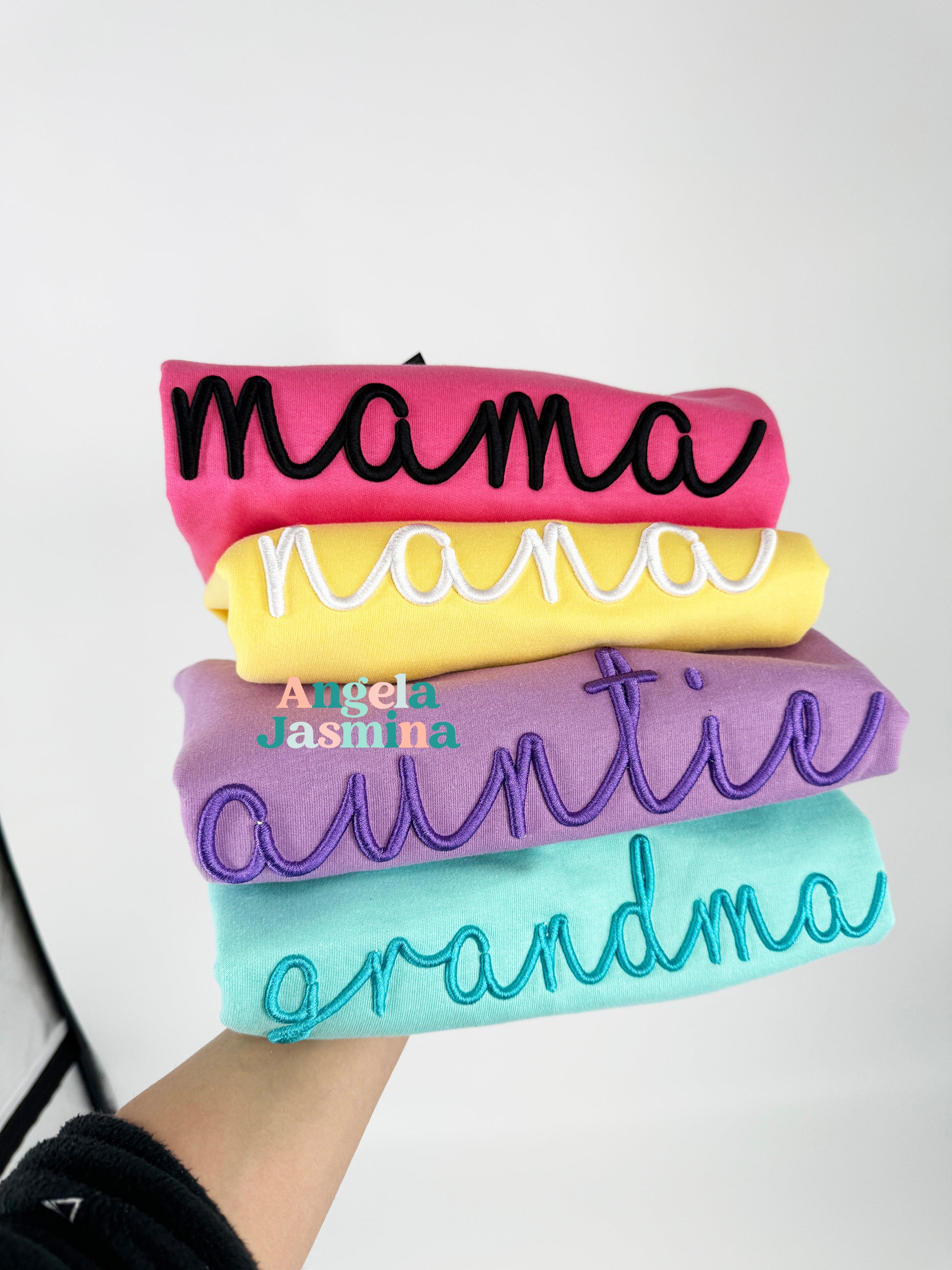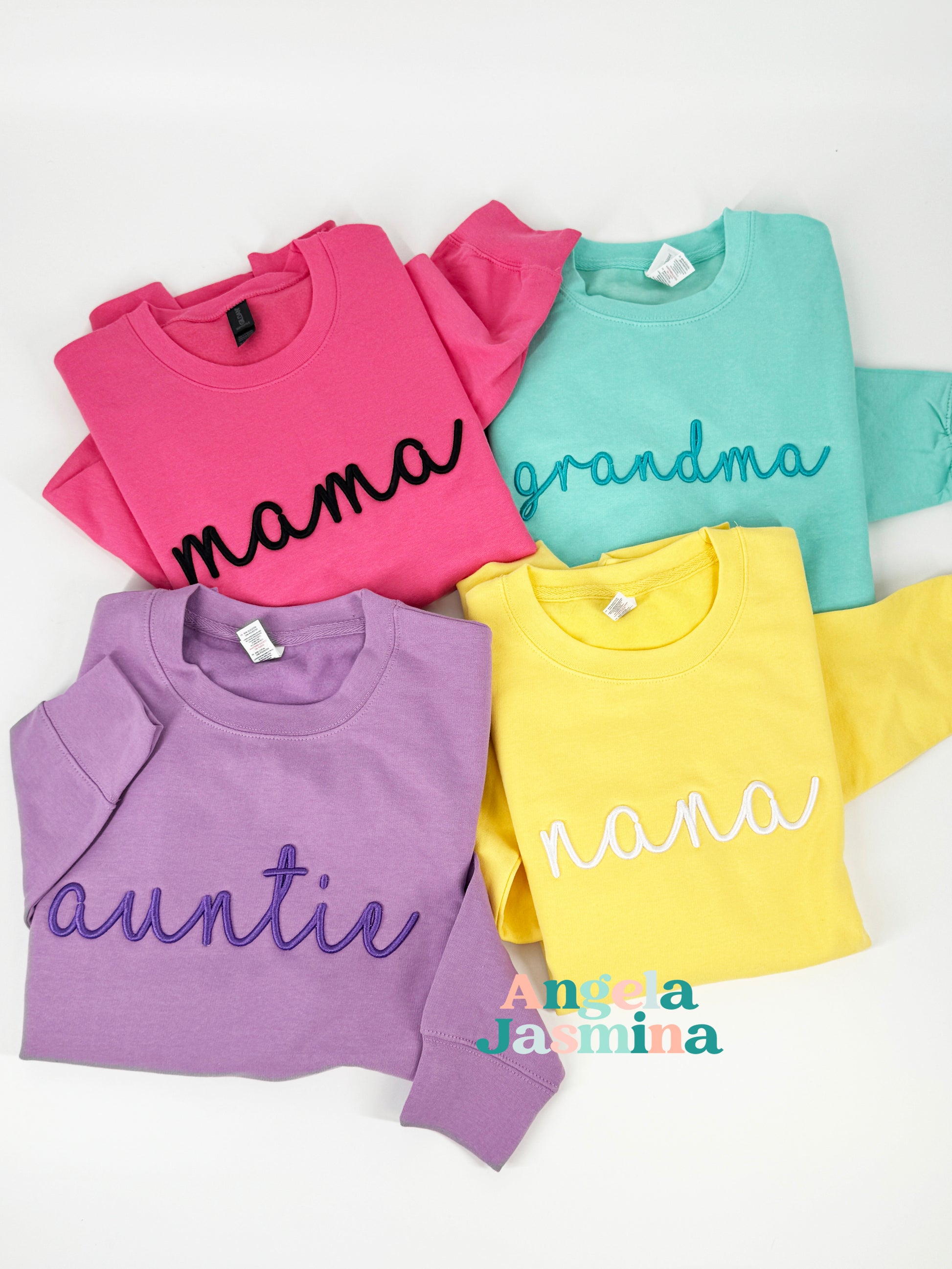 Elevate your cozy wardrobe with our custom embroidered sweatshirt featuring luxurious puff foam detailing and the endearing title of 'mama,' 'grandma,' or 'auntie'! Each sweatshirt is meticulously crafted with the utmost care and attention, boasting the chosen title in a beautifully raised script. What makes this piece truly special is its customizable thread color, allowing you to tailor it to your unique taste and style. Whether you prefer classic neutrals, vibrant hues, or trendy pastels, the choice is yours! Made from premium materials, our sweatshirts offer both comfort and durability, making them perfect for lounging at home or running errands in style. Treat yourself or surprise a special maternal figure in your life with this thoughtful and stylish gift. Embrace the joy of motherhood, grandmotherhood, or aunthood with flair and confidence in our customizable embroidered sweatshirt