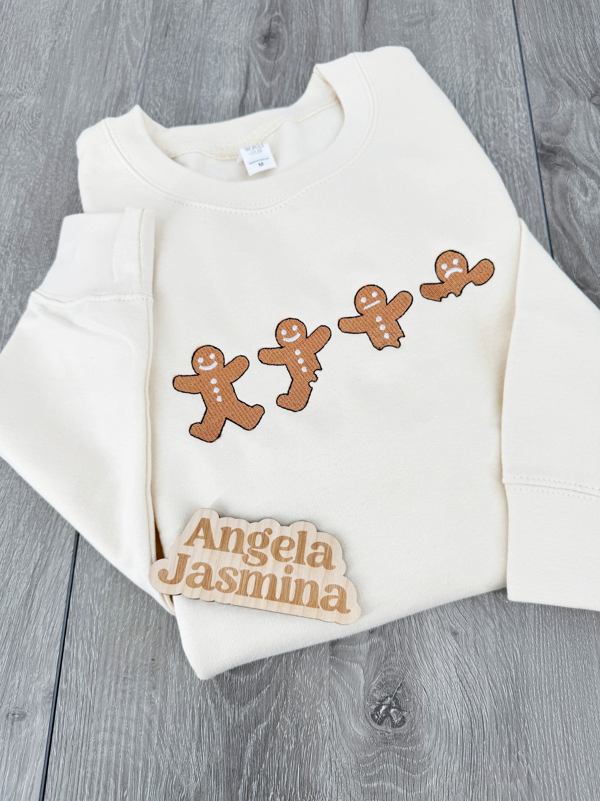 Watch out! These four adorable gingerbread men are trying their best to escape – but they’re getting nibbled away! This quirky embroidered sweatshirt captures the playful holiday spirit with a fun twist, featuring four gingerbread men in various stages of being eaten. A perfect blend of cute and humorous, this cozy sweatshirt is sure to turn heads and spark conversations at any festive gathering.