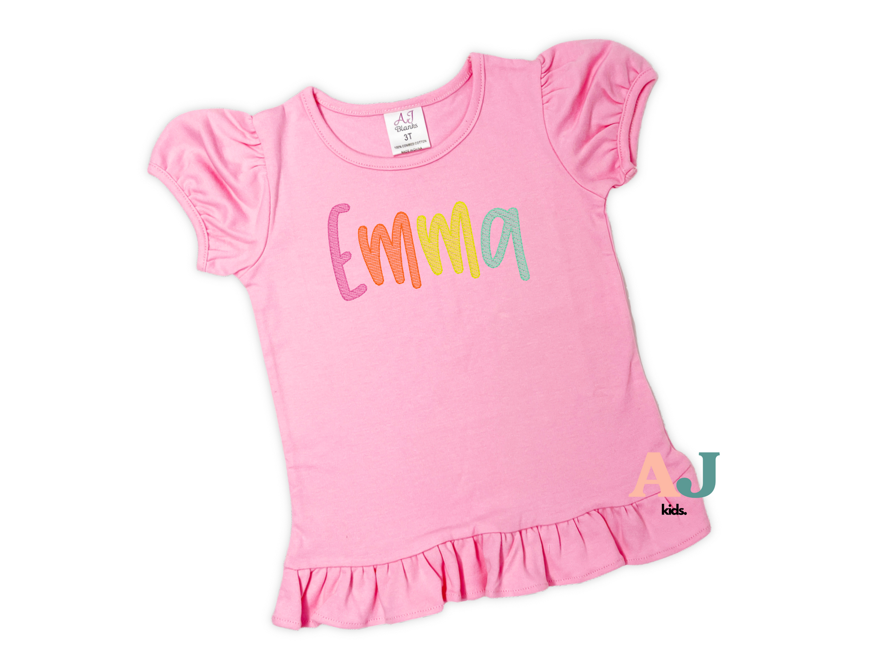 Girls Personalized Embroidered Ruffle Rainbow Shirt