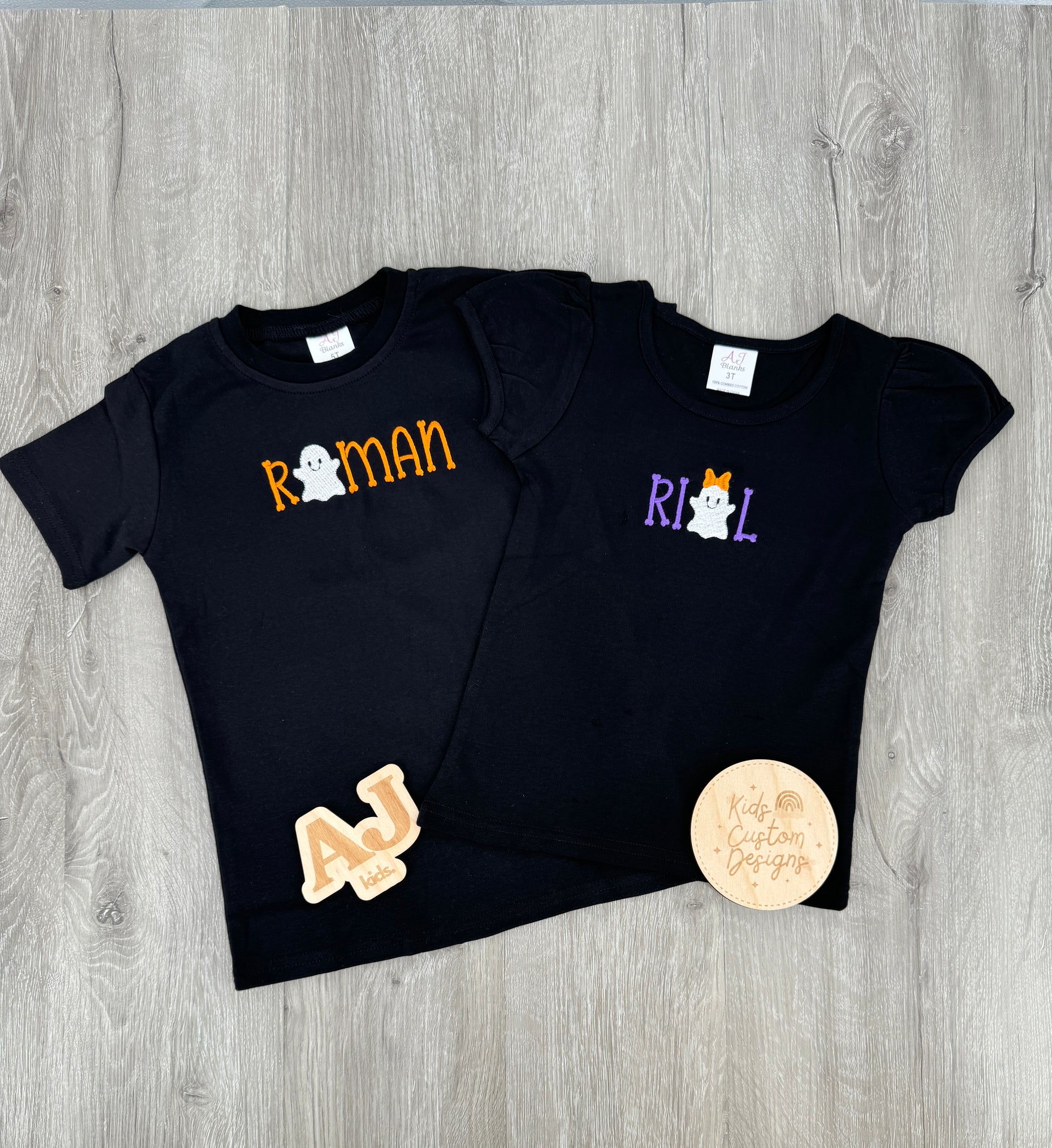 Kids Personalized Halloween Ghost Embroidered Shirt