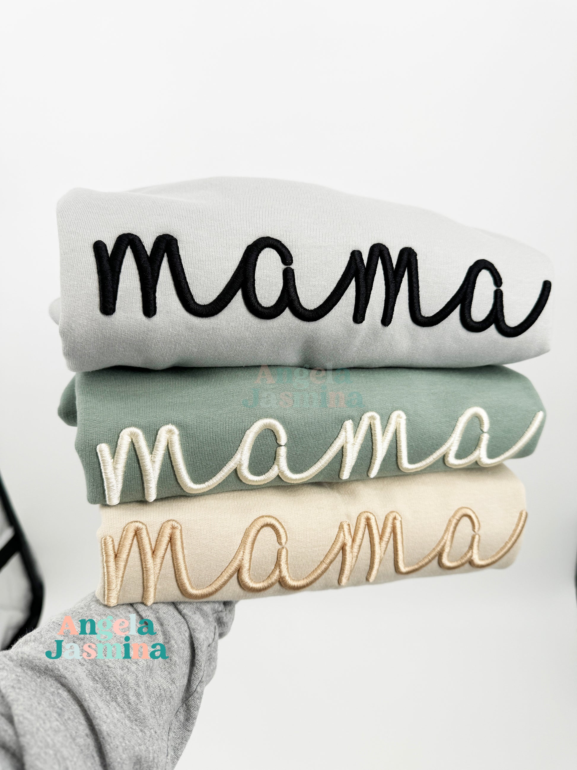 Wrap yourself in comfort and style with our embroidered sweatshirt featuring the endearing title 'Mama' in luxurious puff embroidery! Crafted with care and attention to detail, this sweatshirt exudes both warmth and sophistication. The raised puff embroidery adds a touch of texture and dimension to the classic script, making it a standout piece in any wardrobe. Available in a range of sweatshirt colors, you can choose the perfect hue to complement your personal style. Made from soft and cozy fabric, our sweatshirt is ideal for lounging at home or stepping out in casual chic. Treat yourself or surprise a special mama in your life with this thoughtful and stylish gift. Embrace the joy of motherhood with flair and confidence in our embroidered 'Mama' sweatshirt