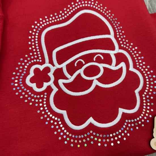 This sparkly embroidered and spangle bling Santa sweatshirt is the perfect mix of cozy and festive — ideal for Christmas parties, holiday photos, or just sipping cocoa by the tree.