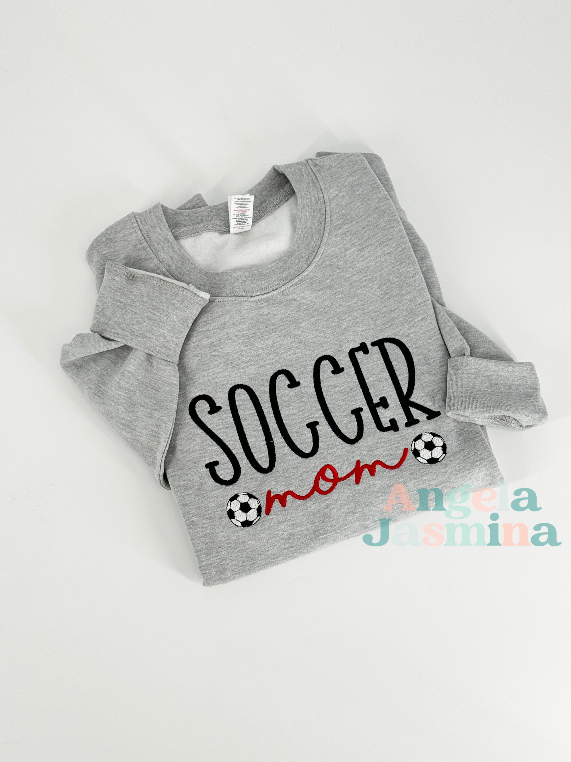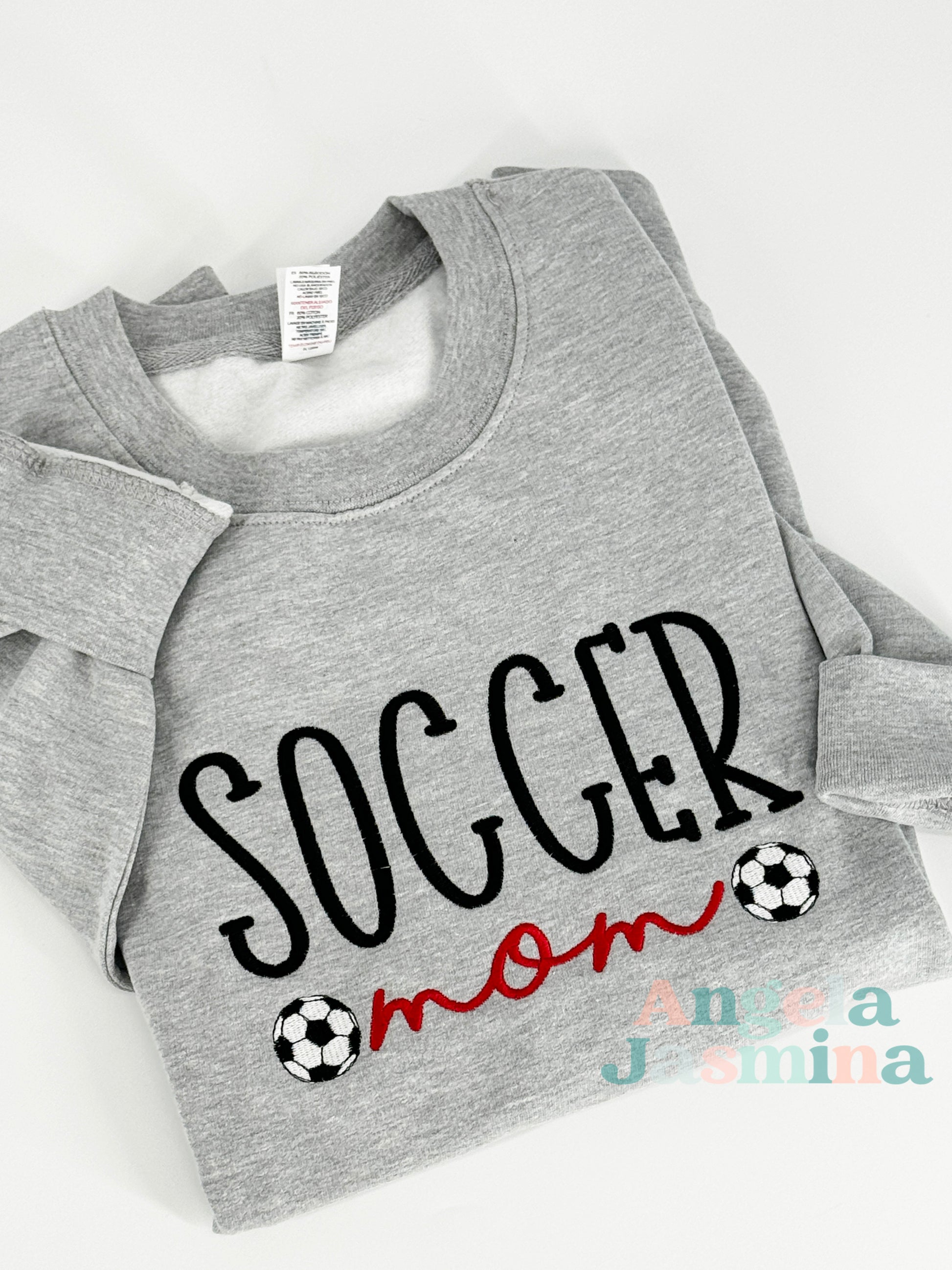 Elevate your game day look with our embroidered 'Soccer Mom' sweatshirt! Show your unwavering support for your favorite player with this cozy and stylish addition to your wardrobe. Crafted with meticulous attention to detail, each letter is expertly embroidered to ensure durability and longevity. Made from premium quality materials, this sweatshirt offers both comfort and style, making it perfect for cheering on your athlete from the stands or while running errands around town. Whether you're a seasoned soccer mom or new to the game, this sweatshirt is sure to become a favorite go-to piece in your closet. Get yours today and rock your proud mom status in style!