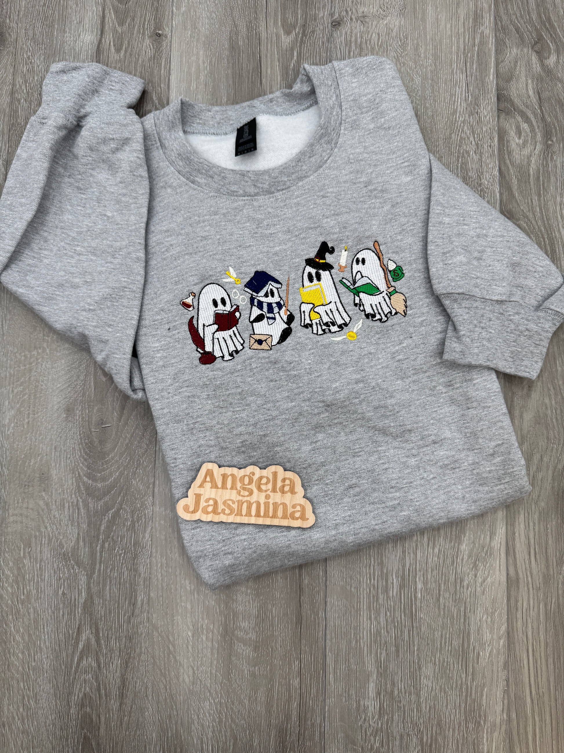 Step into the wizarding world this fall with our Wizard School Ghost Embroidered Sweatshirt! ✨👻 Each ghost is dressed in magical gear—from reading spell books to carrying letters, wearing wizard hats, and even holding a broomstick. A cozy nod to your favorite fantasy world, this sweatshirt is perfect for spooky season and beyond.